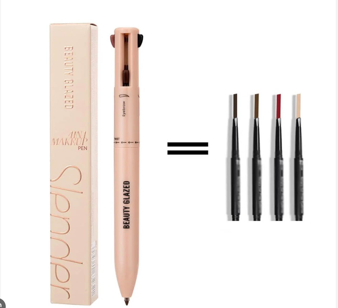 Declutter your makeup bag with the Beauty Glazed 4-in-1 Makeup Pen. This innovative multi-use pen features four essential makeup shades in one sleek design: Eyeliner, Eyebrow Pencil, Lip Liner, and Highlighter. Perfect for quick touch-ups on the go!