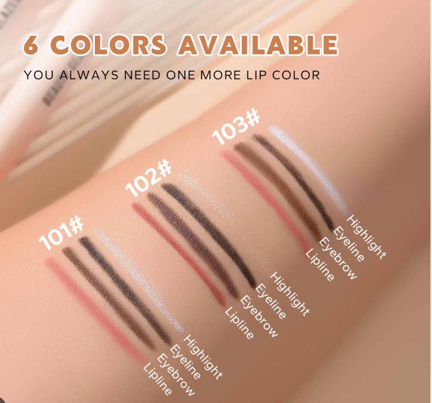 ✅ 4 Functions in 1: Includes Black (Eyeliner), Brown (Brows/Liner), Red/Pink (Lip Liner), and White Shimmer (Highlighter).