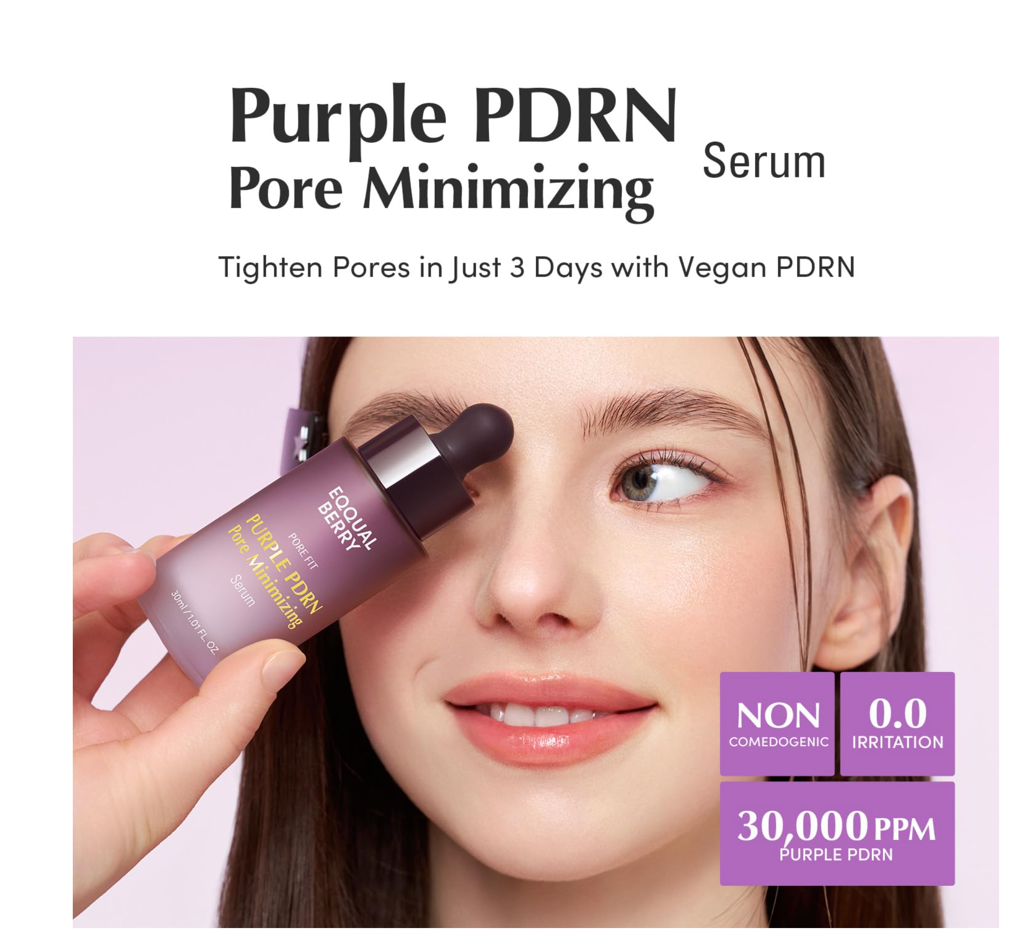 EQQUALBERRY Purple PDRN Pore Minimizing Serum – Vegan Collagen & Peptides for Pore Refining & Skin Elasticity | Niacinamide & CICA Exosome for Calming | Korean Glass Skin