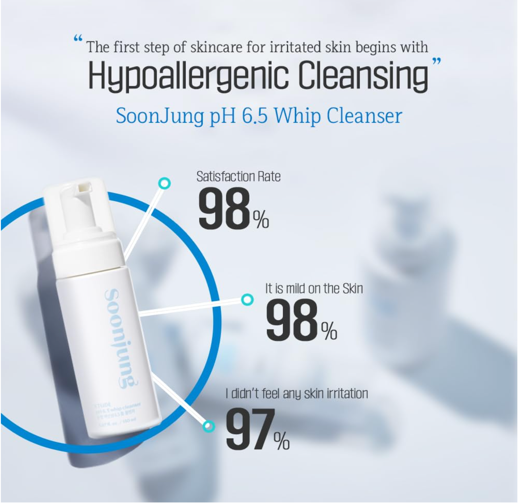 Soothe and cleanse your skin with ETUDE SoonJung pH 6.5 Whip Cleanser, a hypoallergenic, low pH foaming face wash designed especially for sensitive and irritated skin. Its soft, whipped bubbles gently remove impurities and excess oil without disrupting the skin’s natural moisture balance.