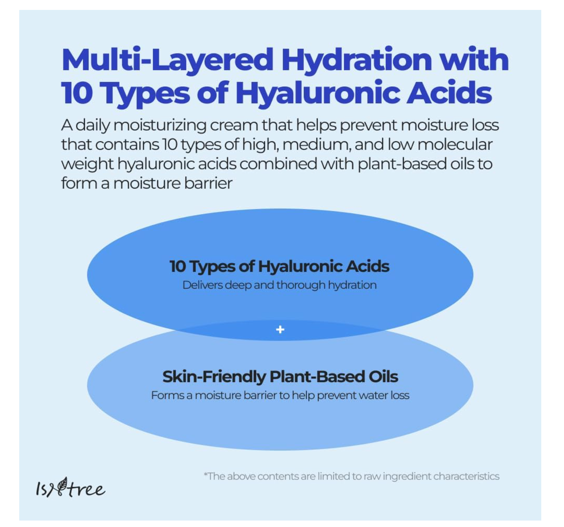 The Isntree Hyaluronic Acid Moist Cream is a deeply hydrating moisturizer formulated with five different types of hyaluronic acid to provide multi-layered hydration, from the surface down to the deeper layers of the skin. This ensures long-lasting moisture retention, leaving the skin feeling soft, plump, and refreshed.Beyond just hydration, this cream is enriched with plant-based oils like apricot, argan, and safflower seed oils, as well as shea butter, which work to nourish the skin, improve its elasticity, and strengthen the natural moisture barrier. These non-comedogenic ingredients help to prevent water loss while supplying the skin with essential nutrients and antioxidants.