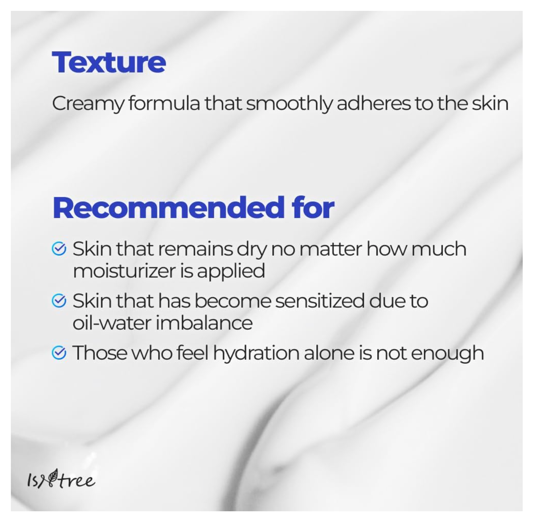 The formula also includes betaine and trehalose for added hydration and moisture retention, and ceramides to further support the skin barrier. Despite its rich moisturizing capabilities, the cream boasts a lightweight and non-greasy texture that absorbs quickly without leaving a sticky residue, making it suitable for various skin types, including normal to dry and even sensitive skin.It's designed to balance the skin's oil and moisture levels, leaving it feeling comfortable and healthy.