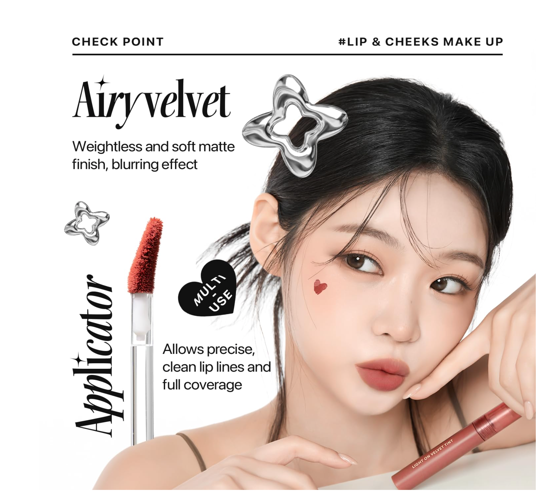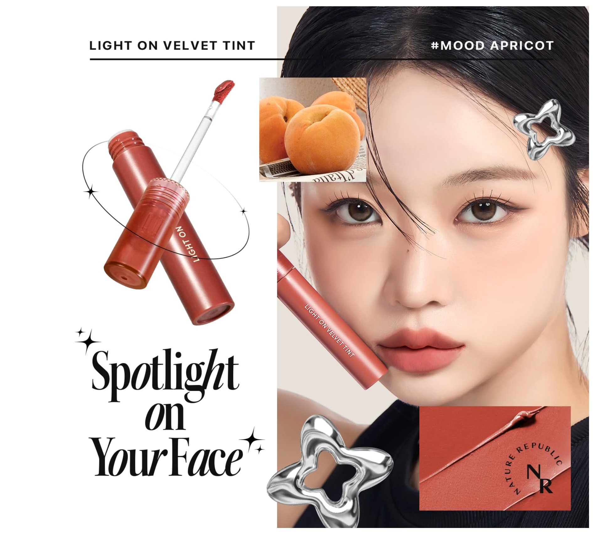 The NATURE REPUBLIC - Light On Velvet Tint is a lip product designed to provide vibrant color with a lightweight, velvety matte finish. It aims to feel comfortable on the lips, offering a soft and smooth application without clumping. The formula is described as having a feather-light texture that adheres smoothly, blurring lip lines for a seamless and refined look. It also boasts a moist finish despite being matte, preventing the drying sensation sometimes associated with velvet lip products. This tint is intended to brighten the complexion with its range of shades, offering a burst of vivid color for a fresh and radiant appearance.