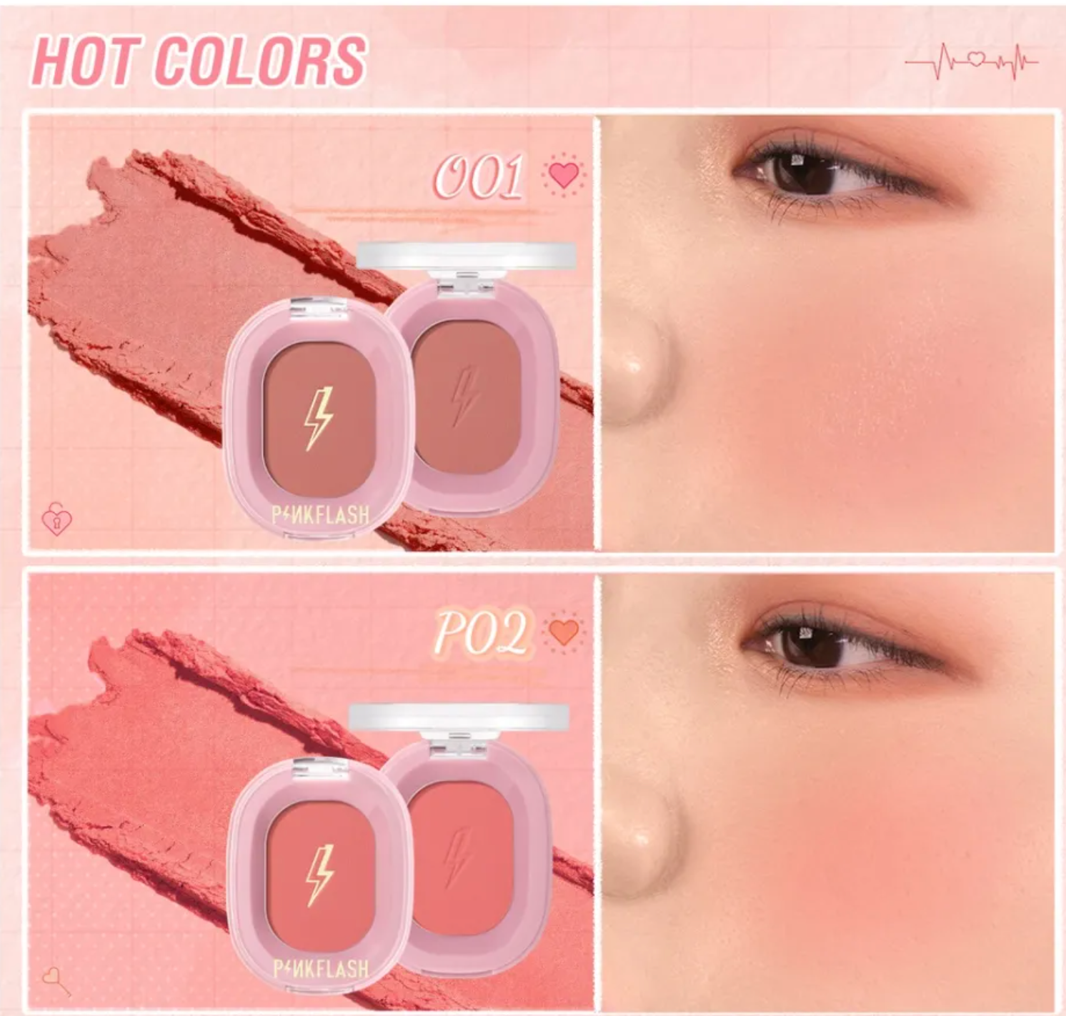 Add a pop of color and a touch of charm with the PINKFLASH Chic In Cheek Blush. This lightweight, silky powder blends seamlessly into the skin, delivering a natural, youthful flush that lasts all day. With buildable pigmentation, it lets you create anything from a soft everyday glow to a bold, statement look. Available in a range of flattering shades, this blush enhances every skin tone and completes your makeup with a fresh, radiant finish.