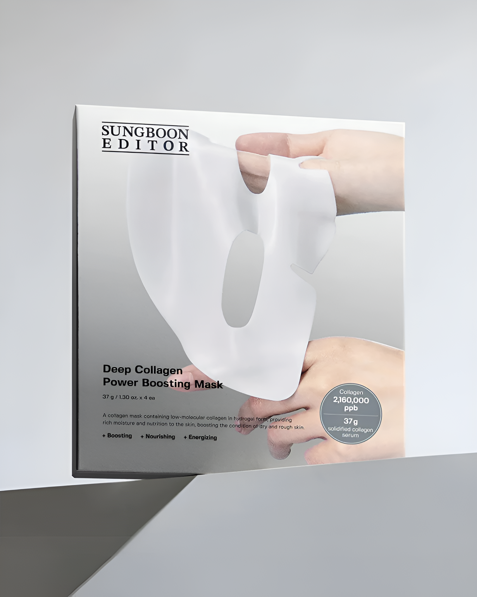 The SUNGBOON EDITOR - Deep Collagen Mask Set Power Boasting is a skincare regimen designed to intensely boost skin's collagen levels for improved elasticity, firmness, and a more youthful appearance. This set typically includes multiple applications of a specialized mask, often formulated with a high concentration of low-molecular-weight collagen and other potent ingredients like peptides and hyaluronic acid. ?The "Power Boasting" aspect suggests a focus on delivering significant and noticeable results, aiming to deeply nourish and revitalize the skin. The masks are likely designed to adhere closely to the skin, allowing for maximum absorption of the collagen-rich essence. Regular use of this set can help to reduce the appearance of fine lines and wrinkles, improve skin texture, and provide deep hydration, resulting in a smoother, plumper, and more radiant complexion. It's an intensive treatment designed to give your skin a powerful boost of anti-aging benefits.