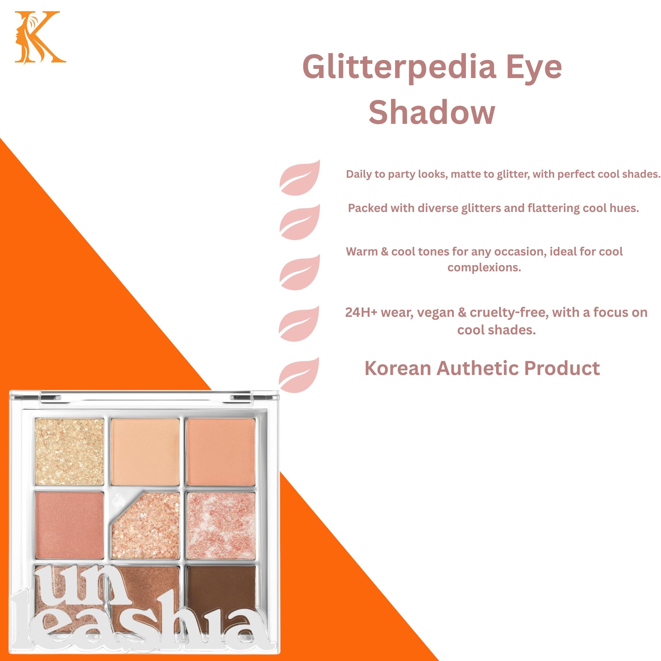 Dive into a world of dazzling brilliance with the UNLEASHIA Glitterpedia Eye Shadow Palette. This isn't just an eyeshadow palette it's a curated collection of show stopping glitters in a variety of textures, sizes and captivating colors. you'll often find a selection of smooth mattes and luminous shimmers to create endless looks.Whether you're aiming for subtle daytime shimmer or glamorous sparkle, the Glitterpedia is your go to for unleashing your inner radiance.