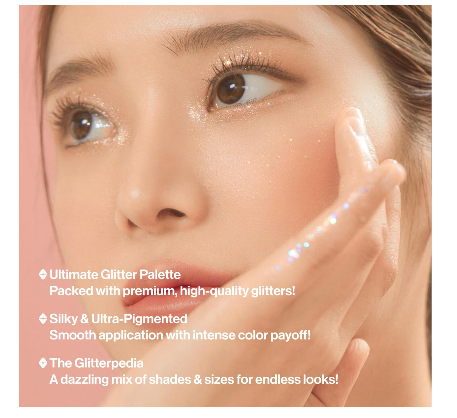 High-Quality Formula: The eyeshadows are generally praised for their smooth texture and good pigmentation, allowing for easy blending and buildable color.The glitter formulas are often designed to minimize fallout and adhere well to the lids.