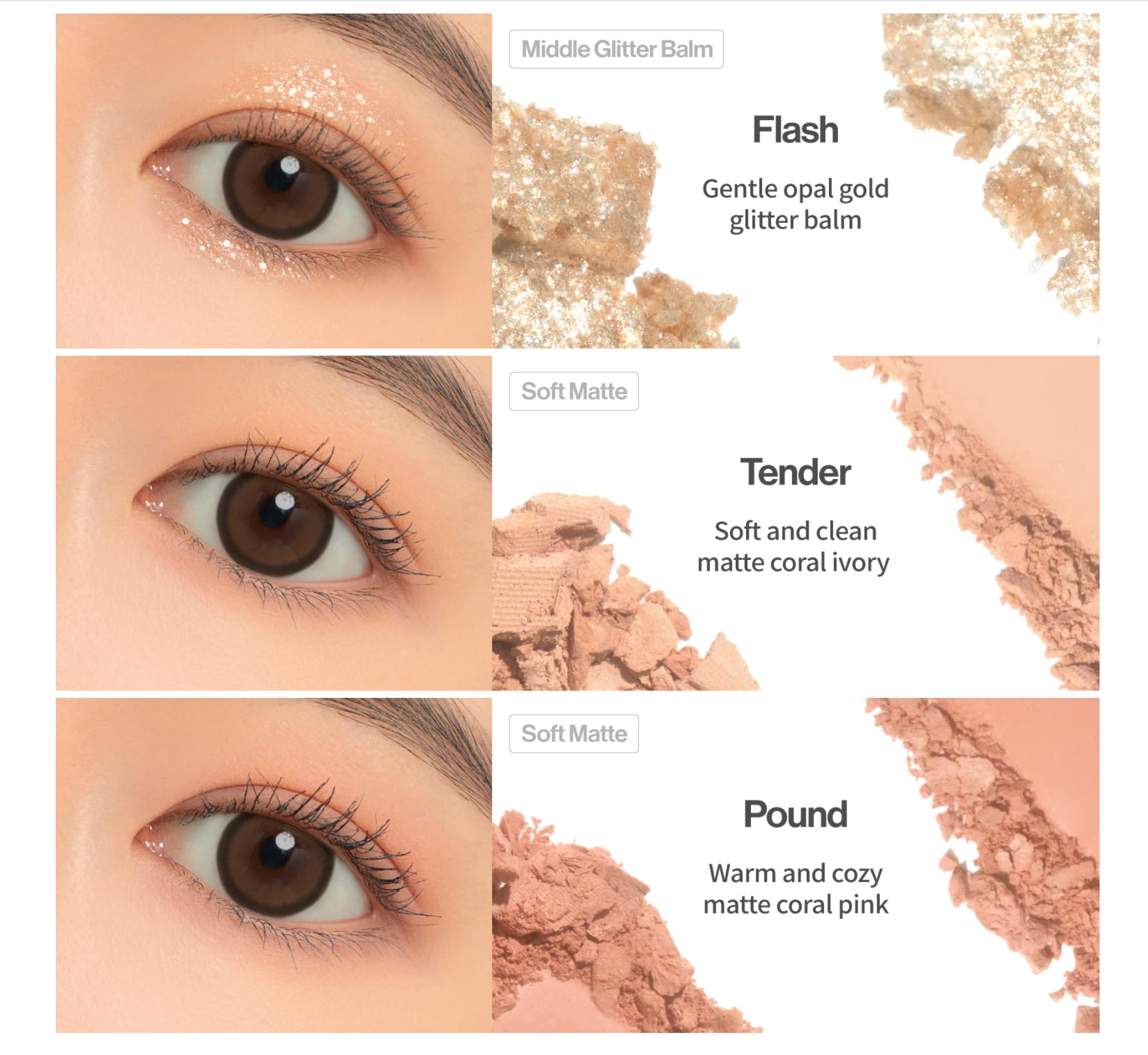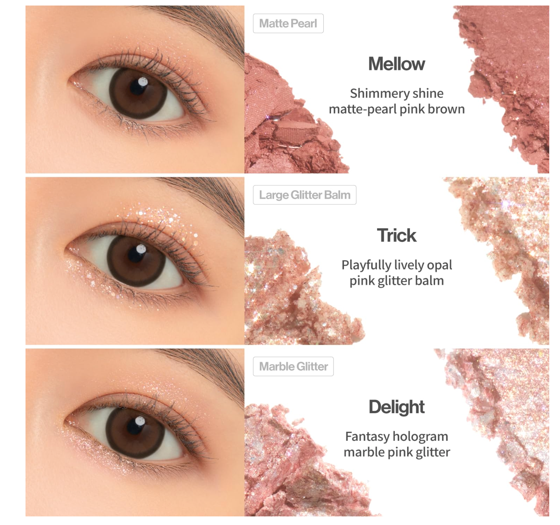 Versatile Color Stories: Each palette is carefully curated with a specific color theme, including a mix of matte transition shades, wearable shimmers and the signature glitters. This allows for cohesive and multi dimensional eye looks.